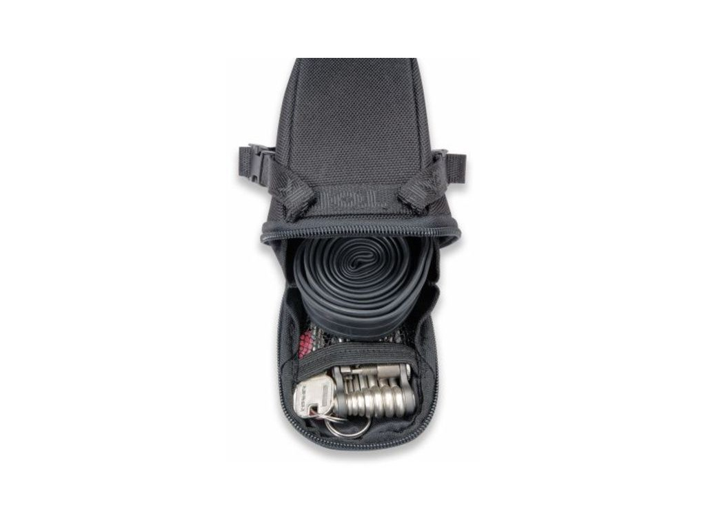 Aerodynamická podsedlová brašna, vhodná pro přepravu duše, nářadí a jiného příslušenství pro opravu kola.