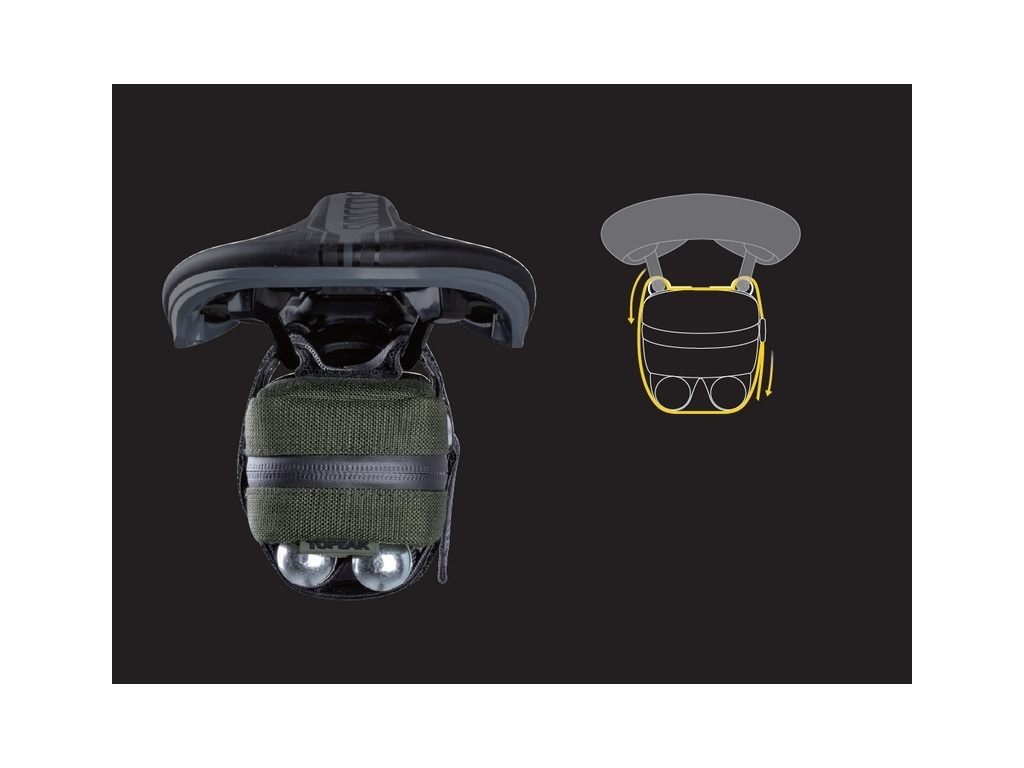 Ultra kompaktní podsedlová brašna je uchycena pod sedlem popruhem na suchý zip pro přepravu duše, montpák, případně dalších drobností pro bezpečnou a jistou jízdu.