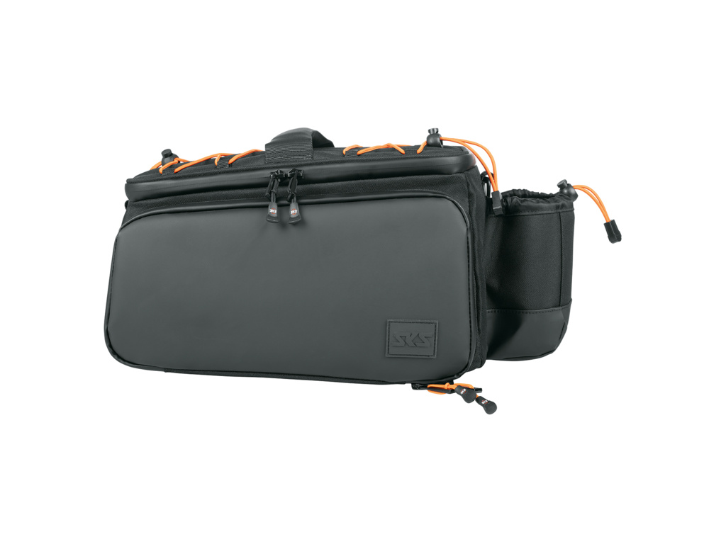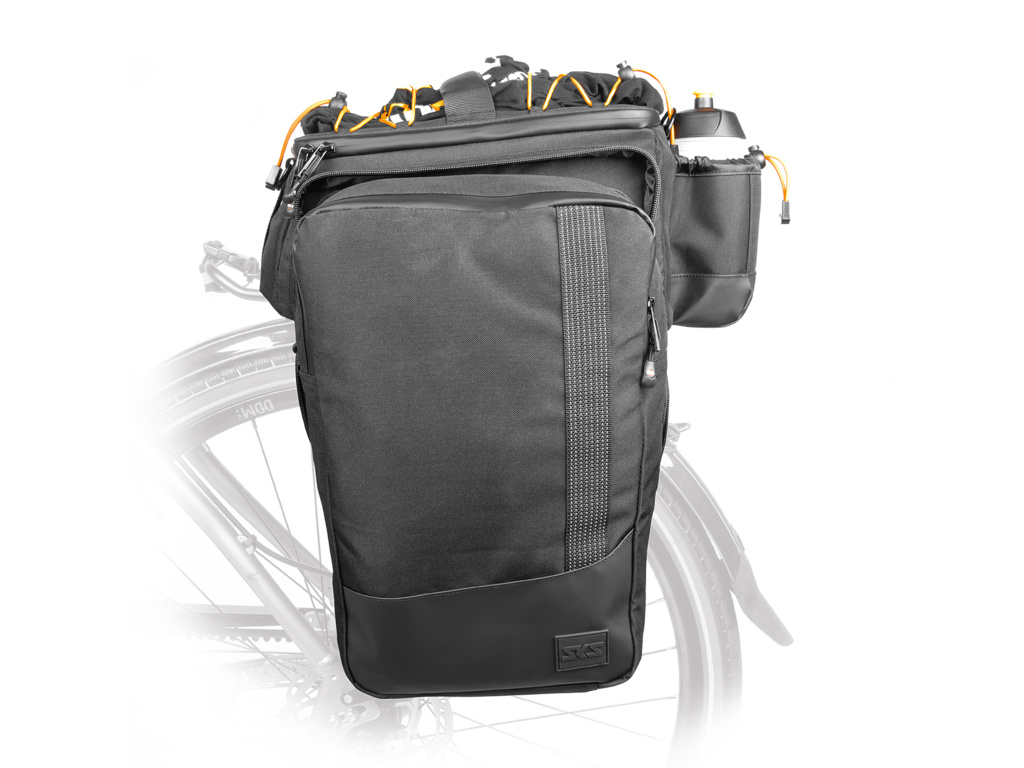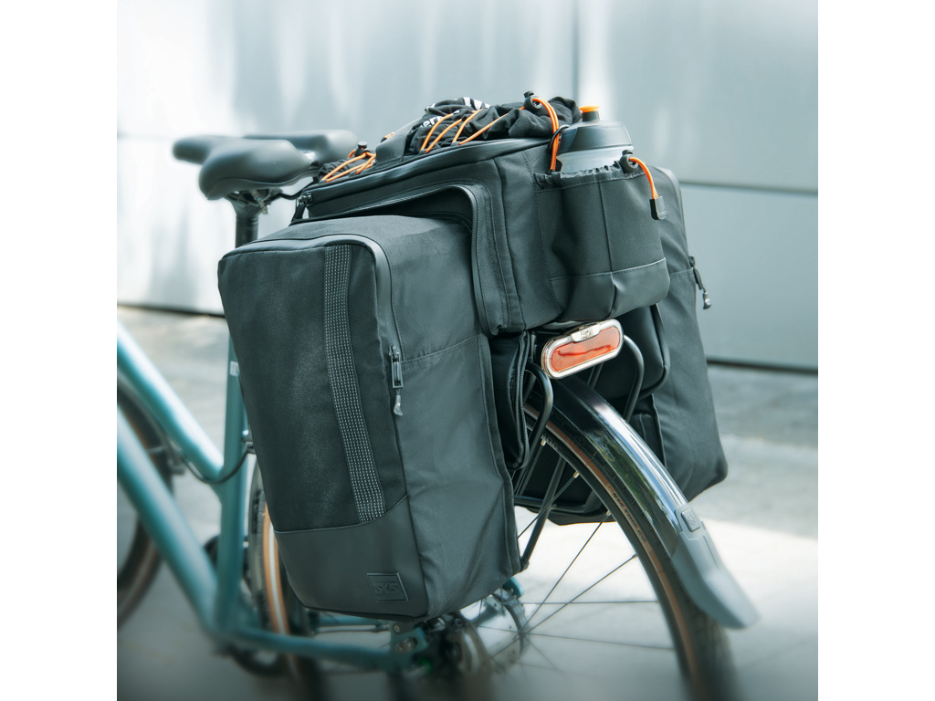 Voděodolná brašna INFINITY URBAN TRUNKBAG XL je skutečným prostorným zázrakem. Díky dvěma výklopným bočním kapsám na zip lze objem snadno rozšířit dle potřeby. Brašna na kolo perfektně padne na nosič SKS INFINITY UNIVERSAL, ale lze ji také namontovat na všechny běžné cyklo nosiče. Je kompatibilní s adaptérovými systémy MIK, AVS, MonkeyLoad, Racktime, XLC CarryMore / i-Rack a KLICKfix (Adaptéry a šrouby nejsou součástí balení). Adaptéry lze připevnit na spodní stranu brašen pomocí šroubů, takže lze použít stávající desky nosiče zavazadel. Na druhou stranu ji lze také namontovat pomocí popruhů na suchý zip Hypalon Velcro. Popruhy na bočních kapsách zajišťují bezpečné uchycení na nosiči. Další popruh lze volitelně připevnit na sedlovku.