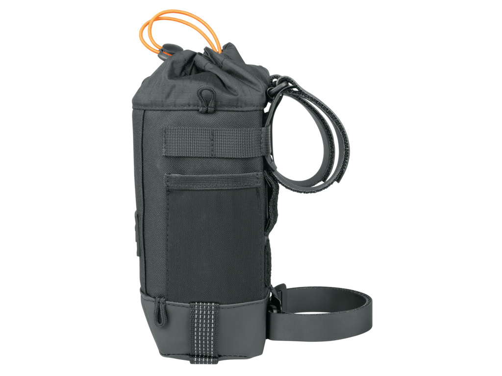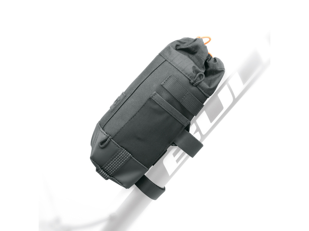 Elastická šňůra umožňuje rychlý přístup ke věcem uvnitř. Brašna na kolo je vyrobena z voděodpudivého, odolného materiálu a je vybavena mnoha funkcemi. Patří mezi ně poutka pro uchycení háčků na karabiny, reflexní prvky, odtok vody ve zpevněné základně a ramenní popruh pro pohodlnou přepravu.