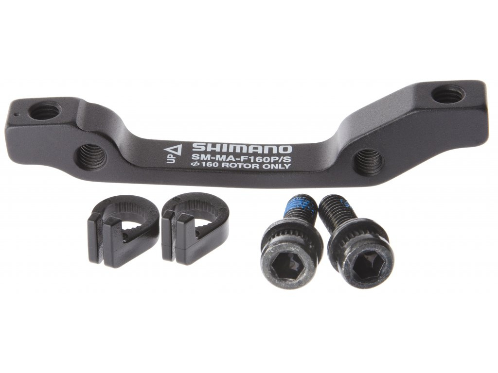 Přední brzdový adaptér Shimano SM-MA-F160P/S na kotouč o průměru 160 mm. Kompatibilní s vidlicí s úchytem IS.