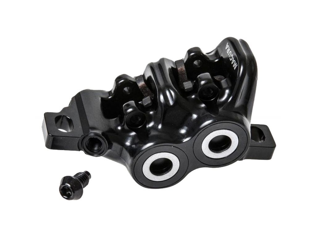 Náhradní brzdový třmen Magura pro brzdovou páku Magura MT5 a MT TRAIL SPORT. Jedná se o 4-pístový třmen určený pro otočný 90° šroub (banjo) s napojením hadičky. Třmen Magura MT5 je vyrobený z jednoho kusu kovu, je vybaven magnetickými Xchange pístky a tak není třeba používat rozpěrnou pružinku mezi destičkami.