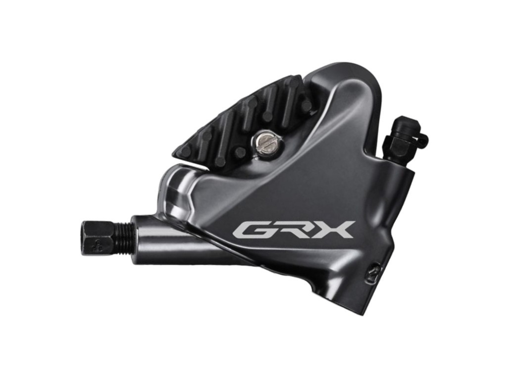 Shimano GRX BR-RX810 je přední hydraulický brzdový třmen s Flat Mount uchycením a polymerovými destičkami L03A s chladičem.