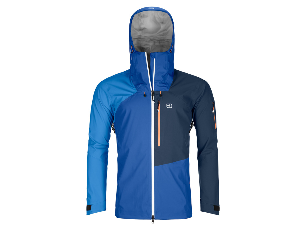 ORTOVOX 3L Orlter je technická bunda s neporézní membránou, kterou můžete nosit celý den, nebo ji mít v batohu jako zálohu, pokud vás přepadne sněžení, déšť nebo vítr. Je lehká, sbalitelná a zároveň odolná. Výborná prodyšnost a větrací zipy vám zaručí komfort i při náročné fyzické aktivitě. Technické propracování, atletický střih a strečový materiál poskytují dokonalou volnost pohybu. Ergonomicky tvarované rukávy můžete stáhnout pomocí manžet na suchý zip. Pas a kapuci stáhnete integrovanými šňůrkami. Límec je vysoký, abyste i při pohledu vzhůru měli obličej perfektně chráněný. Z vnitřní strany límce (na bradě) naleznete materiál MERINO MESH, který je velmi příjemný na dotek. Na hrudníku bundy je velká kapsa, do které schováte i mapu a na rameni je kapsa vhodná na doklady, kreditní kartu nebo skipas. Všechny švy jsou podlepeny a podél hlavního zipu je léga, která odvádí vodu a udržuje vás v suchu. Kapuce je kompatibilní s přilbou.