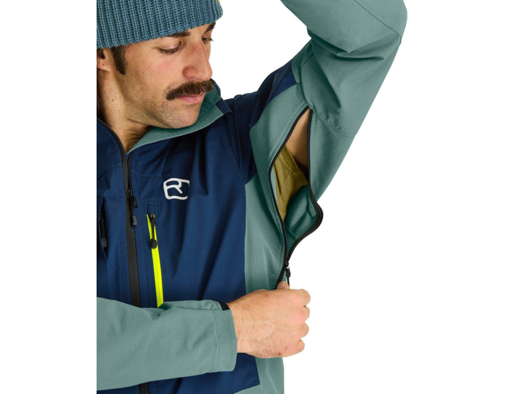 Bunda ORTOVOX Mesola je lehká pánská freeridová bunda hybridní konstrukce, která vám poskytne komfort softshellu a nepromokavou ochranu hardshellu.