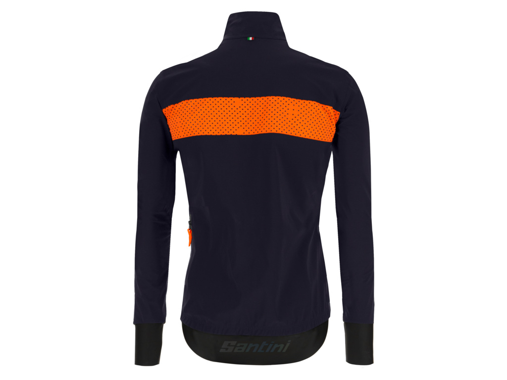 SANTINI Guard Mercurio je vodě a větru odolná bunda pro nejextrémnější dešťové podmínky. Poskytuje kompletní ochranu proti silnému dešti v aero, vysoce výkonném střihu. Byla vyrobena z inovativní tkaniny Mercurio, má trojvrstvou membránou pro extra vnitřní teplo, tepelně svařované švy a voděodolný zip pro úplnou ochranu. Ergonomicky střižené voděodolné manžety rukávů a zadní prodloužená část bundy je vyrobená z fleecem podšité tkaniny Superroubaix s plně voděodolnou PU vnější vrstvou, která odpuzuje vodu. Reflexní pruhované vložky na hrudi a zádech a reflexní logo SANTINI zajišťují maximální viditelnost a tím i bezpečnost. Vodotěsná boční kapsa na zip slouží pro bezpečné uložení vašich cenností.