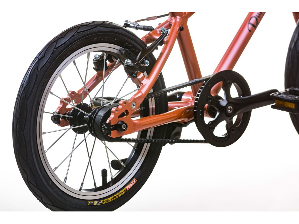 Superlehké 14palcové dětské kolo pro děti ve věku od 2,5 do 4,5 let, s výškou postavy od 95 do 110 cm. Místo klasického řetězu je kolo osazeno řemenem Gates Carbon Drive, který zajišťuje tichý a bezproblémový chod. S hmotností pouhých 5,4 kg se řadí mezi nejlehčí kola na trhu.