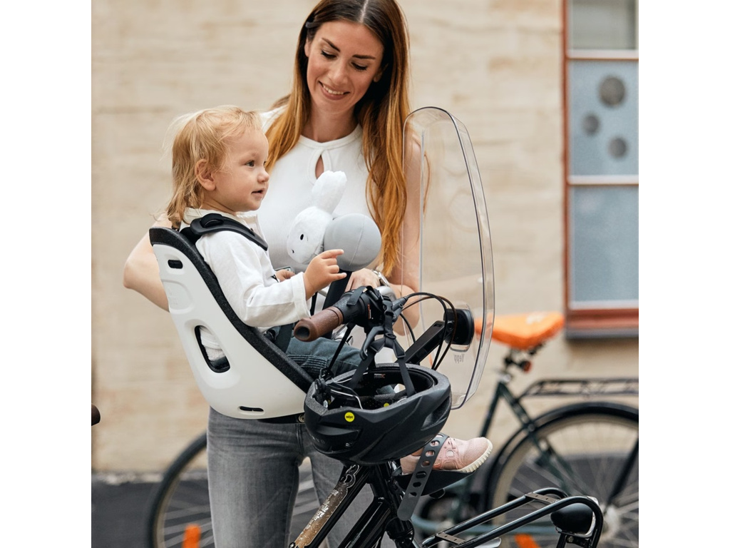 Čirý štít pro cyklosedačku Thule Yepp Mini, vyrobený z odolného a zcela průhledného materiálu, dítě během jízdy ochrání před větrem a hmyzem.
