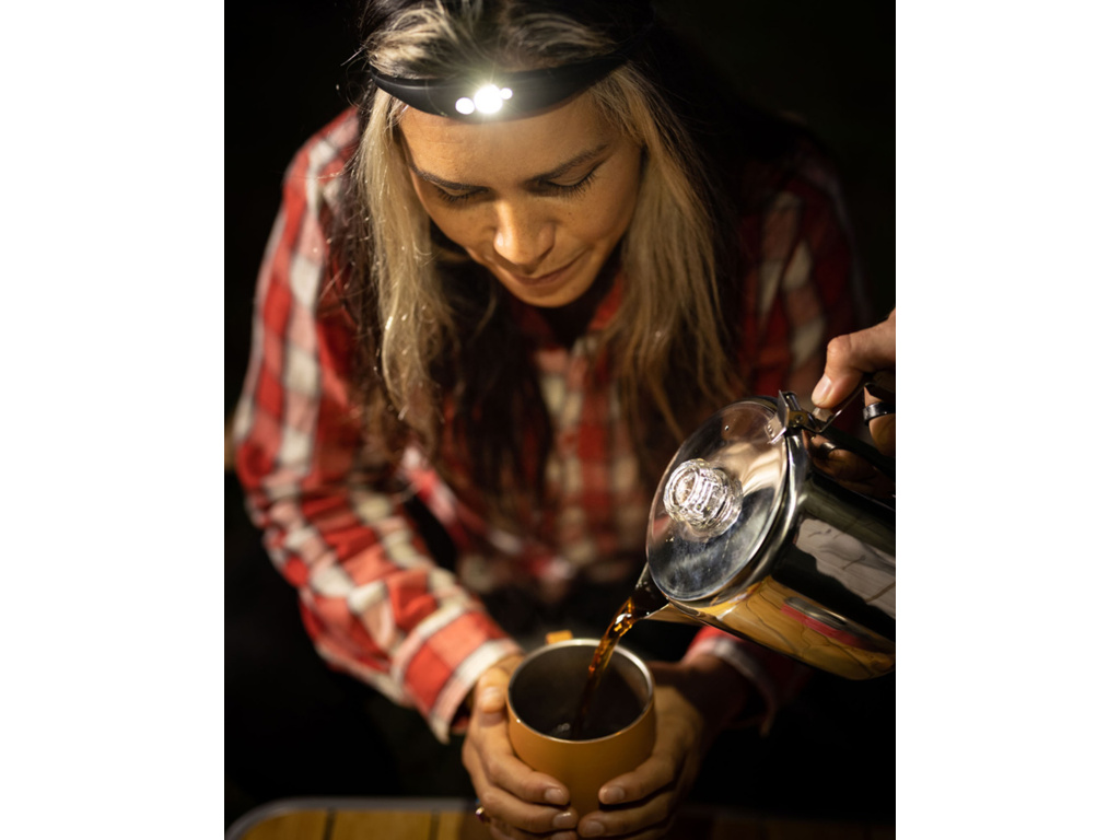 Tyto 3 sady LED diod jsou optimálně umístěny pro svůj individuální účel – bodový kužel světla do dálky, široký kužel světla pro okolní světlo a červené světlo pro noční/slabé světlo. To vše nyní se 150 lumeny.