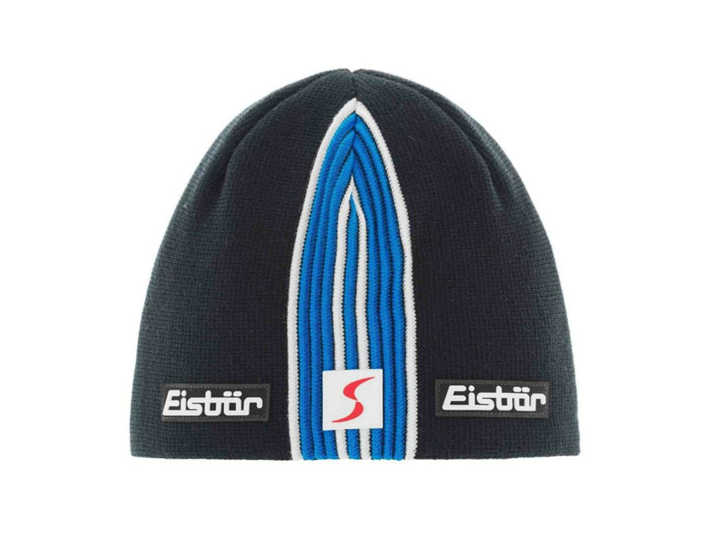 Pánská sportovní retro čepice značky Eisbär. Ingemar 2.0 MÜ XL SP s pruhovanou aplikací a logem Austria Skiteam je sportovním alpským doplňkem určeným především na hory.