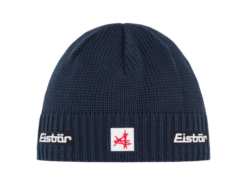 Klasická zimní čepice Eisbär Trop MÜ XL SA v jednoduchém, sportovně elegantním pleteném designu s logem Eisbär a Austria Ski Team.