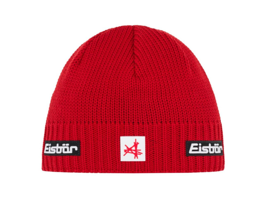 Klasická zimní čepice Eisbär Trop MÜ XL SA v jednoduchém, sportovně elegantním pleteném designu s logem Eisbär a Austria Ski Team.