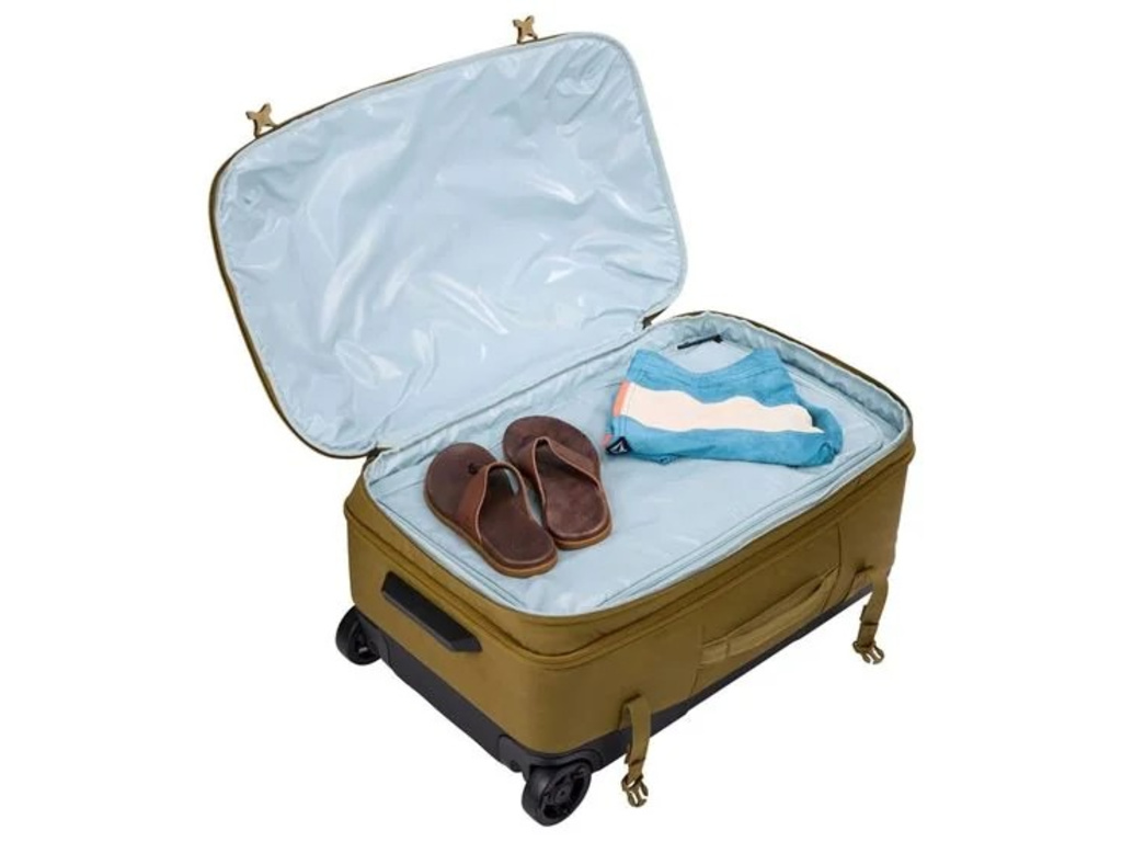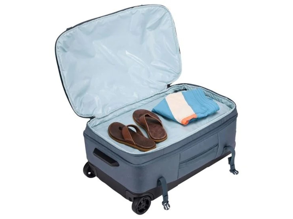 Cestovní kufr na kolečkách Thule Aion je prostorný kufr na odbavení, který udržuje všechny vaše věci organizované a chráněné díky odolnému a voděodolnému voskovanému plátnu, velké kapse, kterou lze snadno čistit od mokrých a špinavých předmětů, a vnějším a vnitřním kompresním popruhům.
