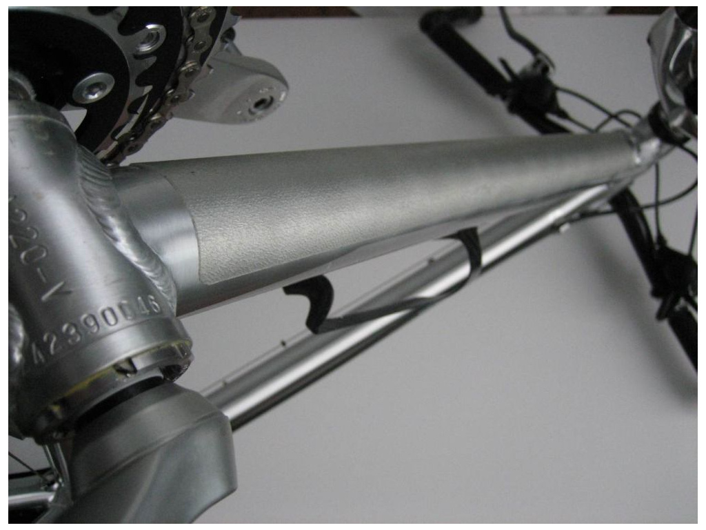 Silná přilnavá páska chrání dolní rámovou trubku kola před odlétávajícím blátem a kamínky. Tuto ochranu ocení hlavně majitelé carbonových kol.