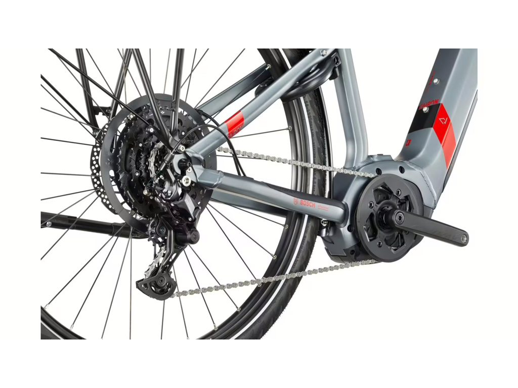 Středový motor Bosch Performance Smart System disponuje velmi slušným výkonem 250W a 75 Nm. Uprostřed řídítek je umístěn barevný displej Bosch Kiox 300, který zobrazuje veškeré údaje o jízdě, včetně aktuálního dojezdu a stupně asistence. Integrovaná rámová baterie PowerTube nabízí dostatečnou kapacitu 625 Wh, pro velmi náročné každodenní zdolávání mnohakilometrových jízd.
