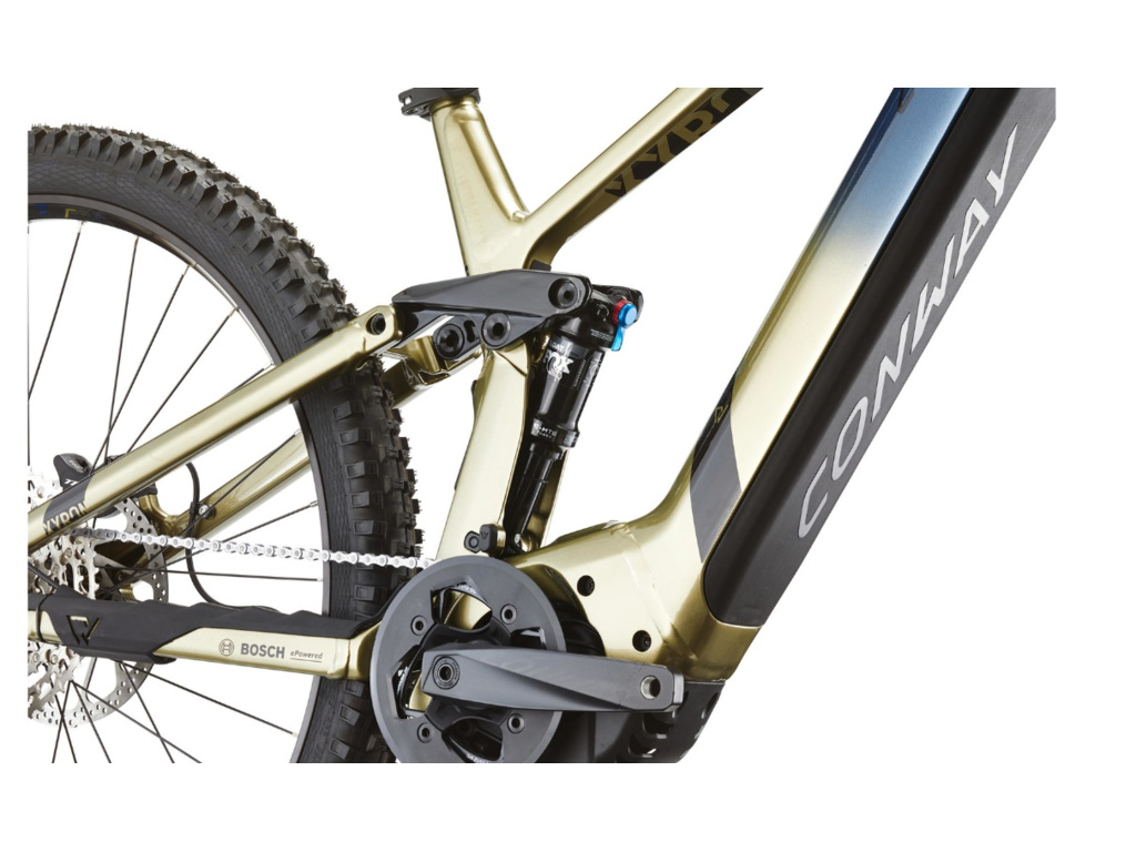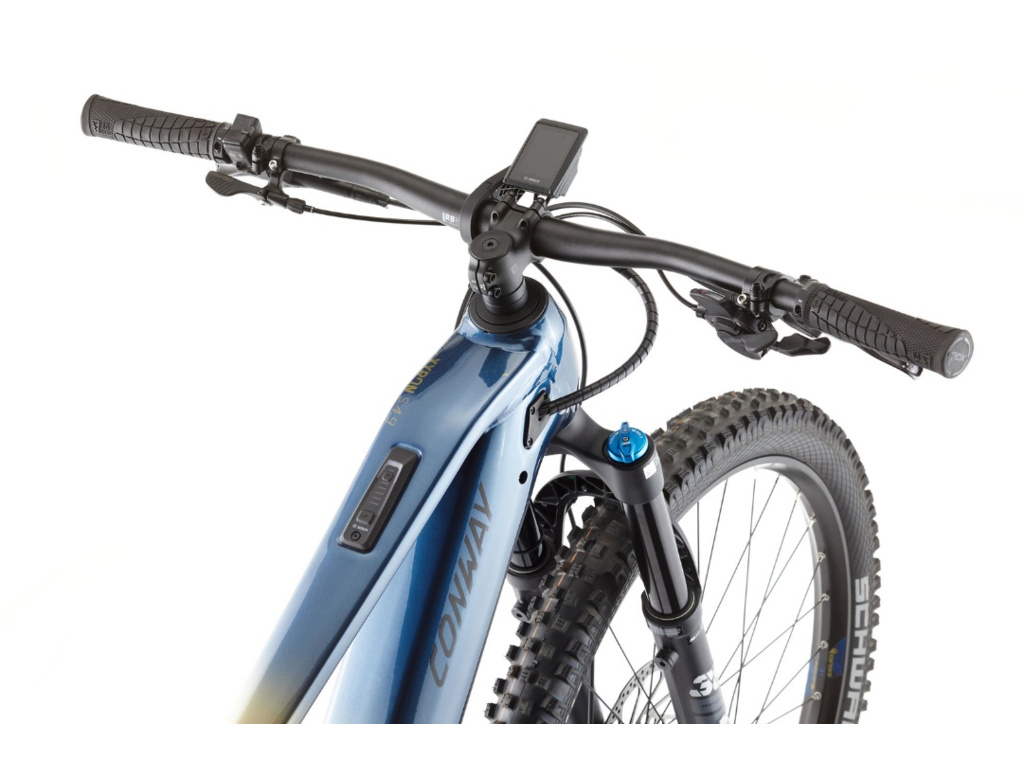 Celoodpružené elektrokolo Conway Xyron S 4.9 s nejvýkonnějším motorem Bosch CX 4. generace a integrovanou baterií 750 Wh nabízí za skvělou cenu moderní trailovou geometrii, 29palcová kola, řazení Shimano Deore s 11 převody a výkonné čtyřpístkové brzdy TRP. Pro maximální jízdní komfort a ovladatelnost je vybaven také teleskopickou sedlovkou. Díky spojení špičkového zpracování, povedené rámové geometrie, osvědčeného pohonu Bosch a příznivé ceny patří celoodpružené modely CONWAY Xyron mezi nejoblíbenější elektrokola.