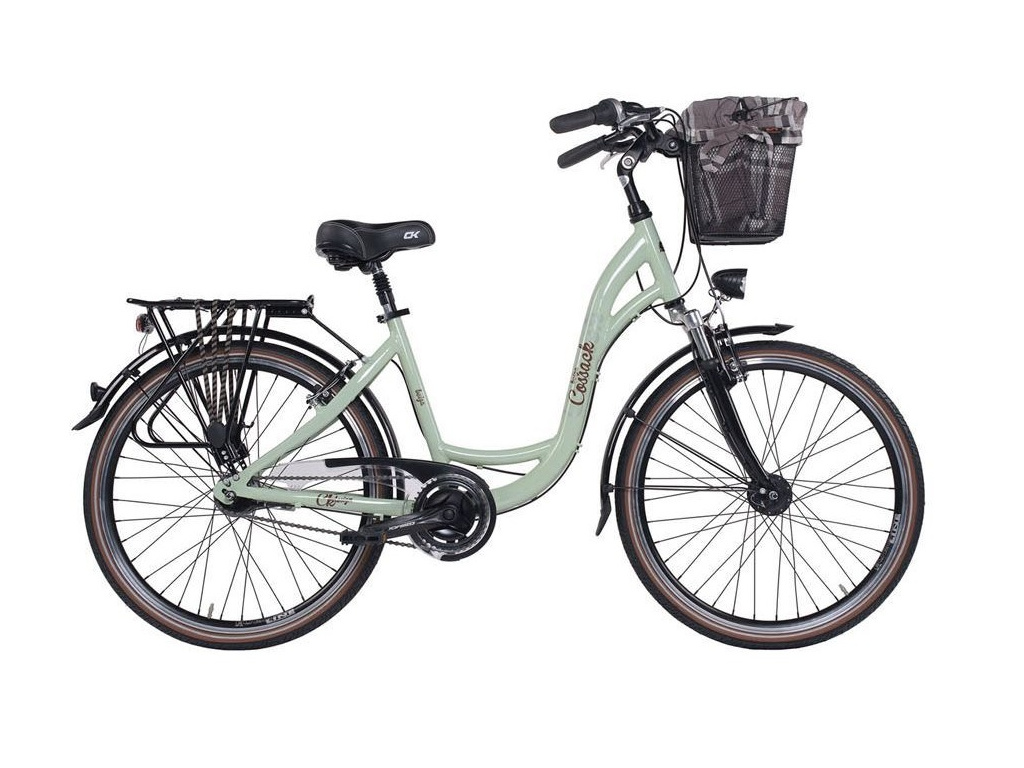 Městské kolo Cossack Beiga s lehkým hliníkovým rámem s nízkým nástupem, 26 palcovými koly a 7-mi rychlostním řazením v zadním náboji. Kolo je vybaveno kvalitním předním i zadním osvětlením, které pohání dynamo v předním náboji, dále blatníky, košem na řídítkách, krytem řetězu a zadním nosičem.