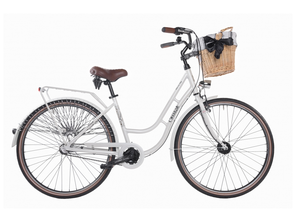 Krásné městské kolo Cossack Classic City s lehkým hliníkovým rámem a 3-rychlostním řazením v zadním náboji. Kolo je dále vybaveno kvalitním předním i zadním osvětlením, dynamem v předním náboji, košíkem na řídítkách, blatníky a nosičem.