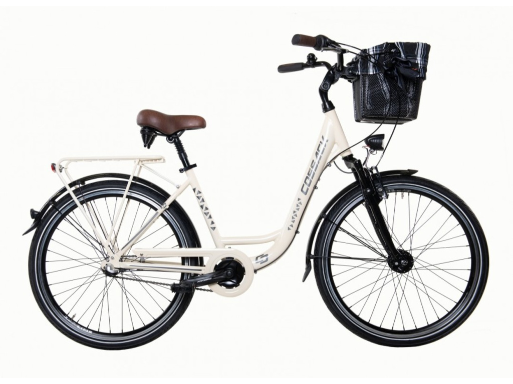 Městské kolo Cossack s lehkým hliníkovým rámem, 26palcovými koly, odpruženou vidlicí a 3rychlostním řazením v zadním náboji Shimano Nexus. Kolo je dále vybaveno kvalitním předním i zadním osvětlením, dynamem v předním náboji, košíkem na řídítkách, bl