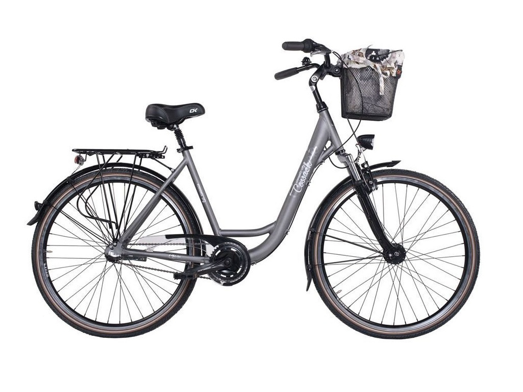 Dámské městské kolo Cossack s lehkým hliníkovým rámem, odpruženou vidlicí a tří rychlostním řazením v zadním náboji. Kolo je dále vybaveno kvalitním předním i zadním osvětlením, dynamem v předním náboji, košíkem na řídítkách, blatníky a nosičem.