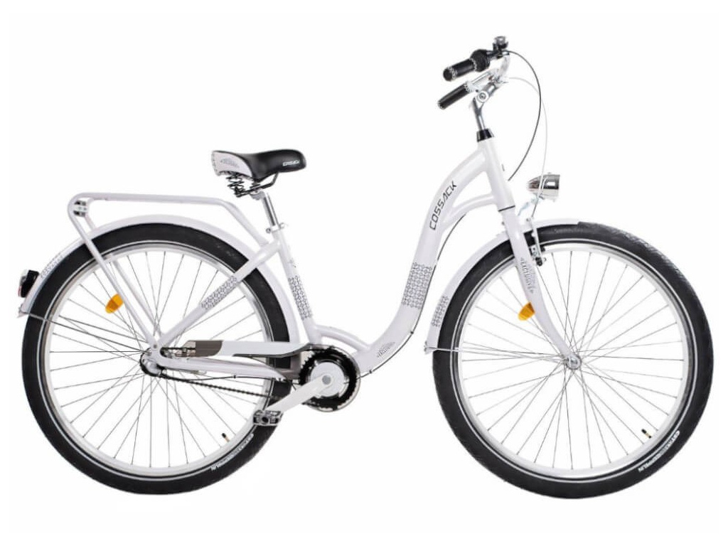 Výborně osazené městské kolo Cossack Exclusive pro pány i dámy. Lehký hliníkový rám s nízkým nástupem je osazen hliníkovou pevnou vidlicí, 3rychlostním řazením Shimano Nexus v zadním náboji a kvalitními komponenty. Dále je vybaven kvalitním LED osvět