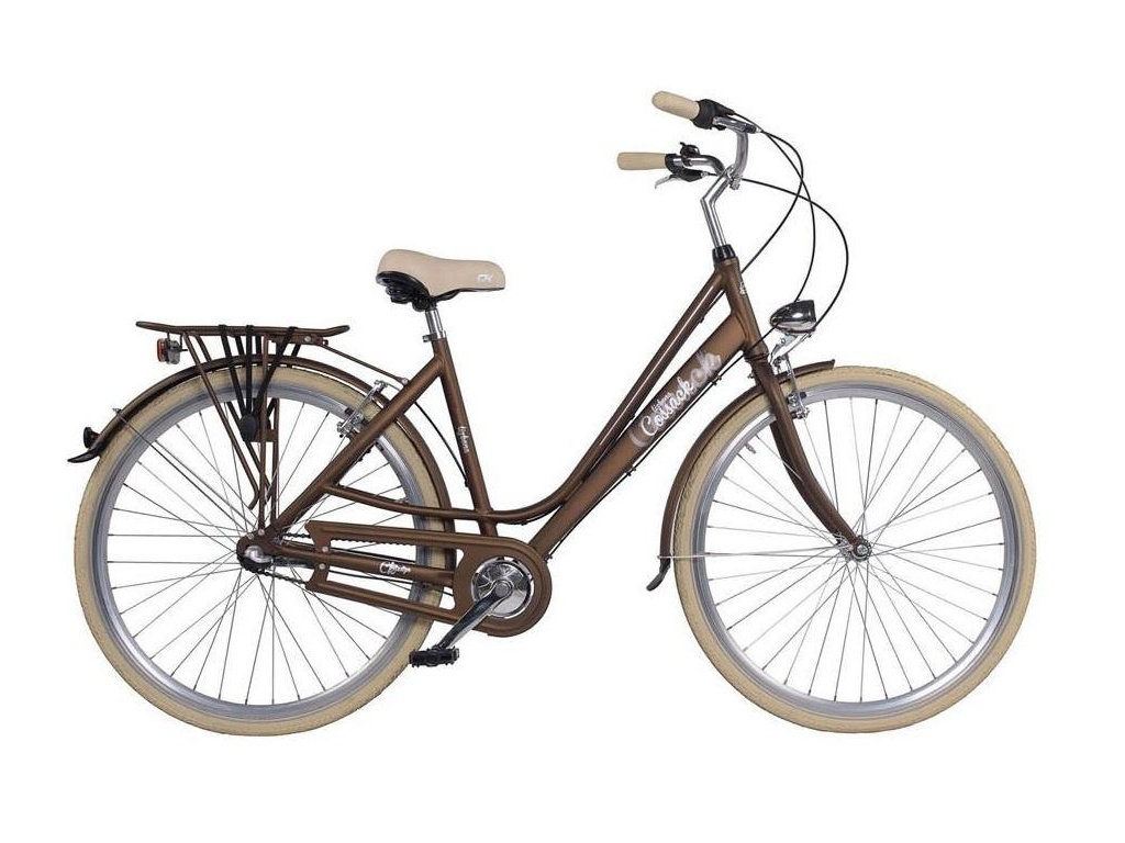 Městské kolo Cossack Lisabon v retro designu vybavené lehkým hliníkovým rámem a tří rychlostním řazením v zadním náboji. Kolo je vybaveno kvalitním předním i zadním osvětlením, blatníky, krytem řetězu a zadním nosičem.