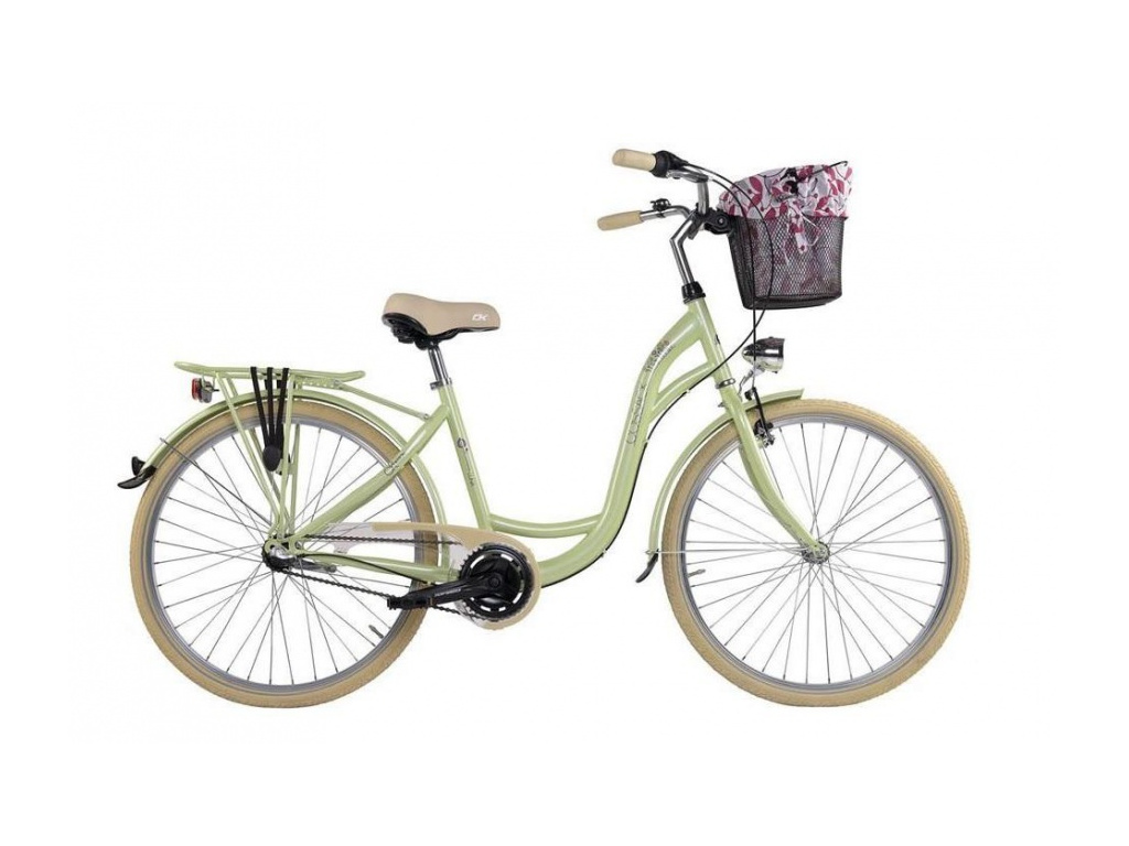 - Extra: Přední i zadní osvětlení, košík na řídítkách, zadní nosič, blatníky, kryt řetězu