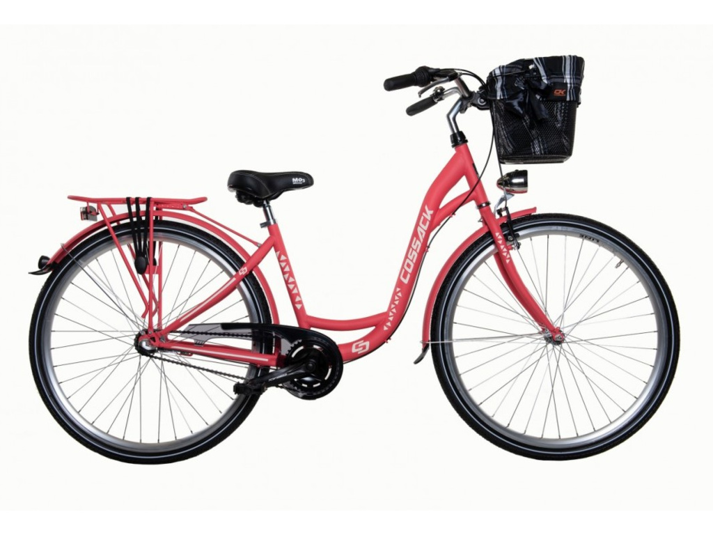 Cossack Luna 28 je městské kolo se 3rychlostním řazením v zadním náboji Shimano Nexus a v atraktivním provedení. Mezi standartní výbavu patří přední i zadní osvětlení, blatníky, košík na řídítkách a zadní nosič. Kolo má ocelový rám, 28 palcová kola a