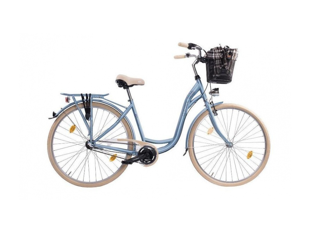 - Extra: Přední i zadní osvětlení, košík na řídítkách, zadní nosič, blatníky, kryt řetězu