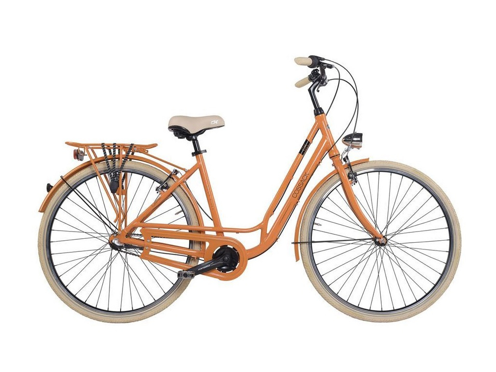 Městské kolo Cossack Moonrider v retro designu vybavené lehkým hliníkovým rámem a tří rychlostním řazením v zadním náboji. Kolo je vybaveno kvalitním předním i zadním osvětlením, blatníky, krytem řetězu a zadním nosičem.