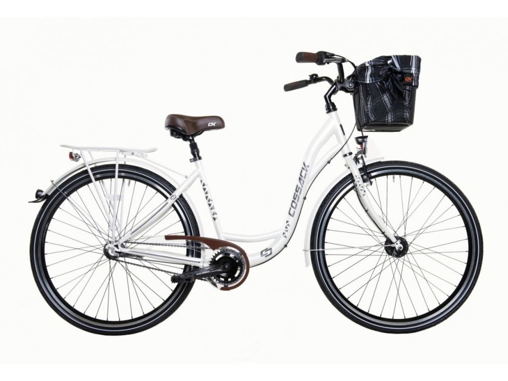 Městské kolo Cossack Solaris pro pány i dámy, do města i na venkov. Základem je odolný ocelový rám o velikosti 19", 28palcová kola a 3rychlostní řazení v zadním náboji Shimano Nexus. Kolo je vybaveno kvalitním předním i zadním osvětlením, které pohán