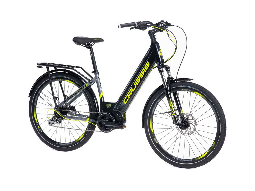 Crussis e-Country 7.6 je městské elektrokolo s hliníkovým rámem, pohodlnou geometrií a koly o průměru 27,5“. Pohon zajišťuje středový motor Bafang Max Drive M400 a integrovaná rámová baterie o kapacitě 522 Wh.
