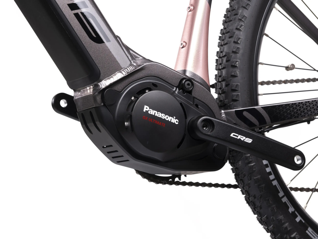 Dámské horské elektrokolo CRUSSIS e-Guera 9.10 s výkonným motorem Panasonic GX Ultimate a baterií s kapacitou 720 Wh, která nabízí dojezd až 170 km.