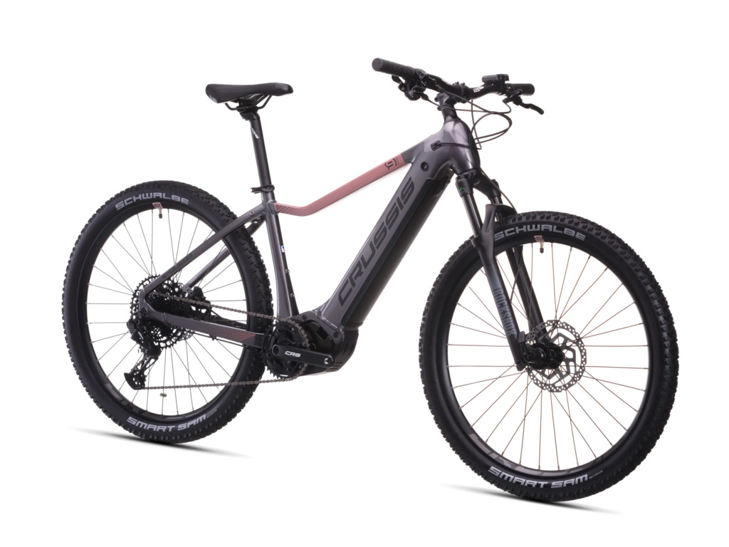 CRUSSIS e-Guera 9.11 s baterií 894 Wh představuje špičkový model dámského horského elektrokola určený pro dlouhé vyjížďky i technicky náročné trasy. Lehký hliníkový rám s upravenou dámskou geometrií poskytuje pohodlný posed a jistotu v každé situaci. Kola 27,5" zaručují svižnou jízdu, zatímco vzduchová vidlice RockShox Judy Silver TK Solo Air se zdvihem 100 mm účinně tlumí vibrace a zvyšuje komfort.