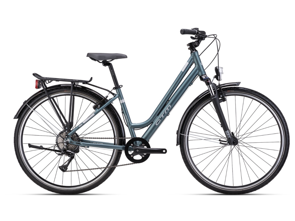 Dámské městské kolo se spolehlivou výbavou a příslušenstvím – nosič, blatníky, světla, stojan.
