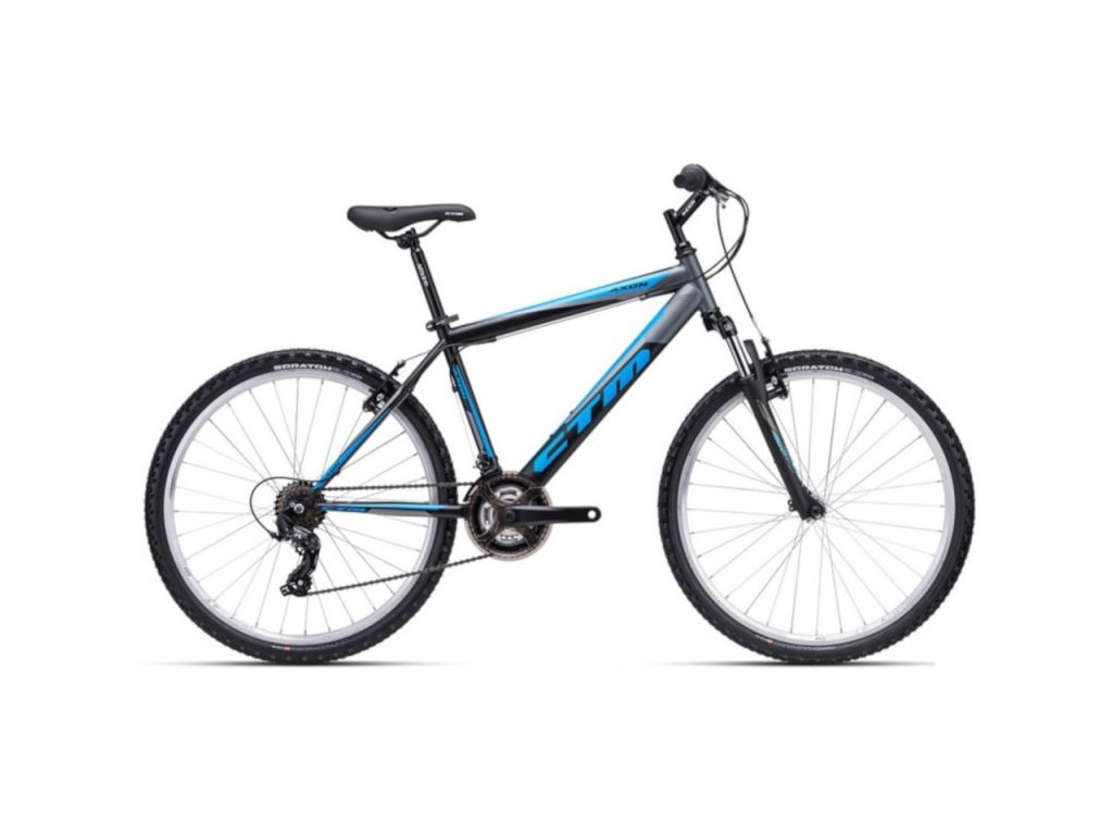 CTM Axon je horské kolo pro nenáročné jezdce. Ocelový rám je osazen odpruženou vidlicí Suntour, komponenty Shimano s 3x7 převody a s ráfkovými brzdami Alhonga.