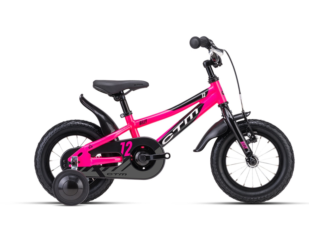 CTM Billy je 12palcové dětské kolo pro ty nejmenší. Má pevný ocelový rám, čímž se stává dostatečně stabilní, a standardně je dodáváno s balančními kolečky, plastovými blatníčky a bezpečnostním krytem řetězu. Zadní protišlapná brzda je doplněna o přední ráfkovou pro maximální bezpečnost. Hravý design modelu a veselé barvy si váš malý sportovce zamiluje.