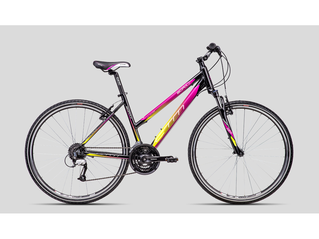 CTM Bora 1.0 je dámské krosové kolo pro rekreační použití, ideální pro vyjížďky po zpevněných i nezpevněných stezkách. Hliníkový rám je osazen odpruženou vidlicí Suntour s uzamykáním, spolehlivými ráfkovými V-brzdami a řazením Shimano s 3x8 převody.