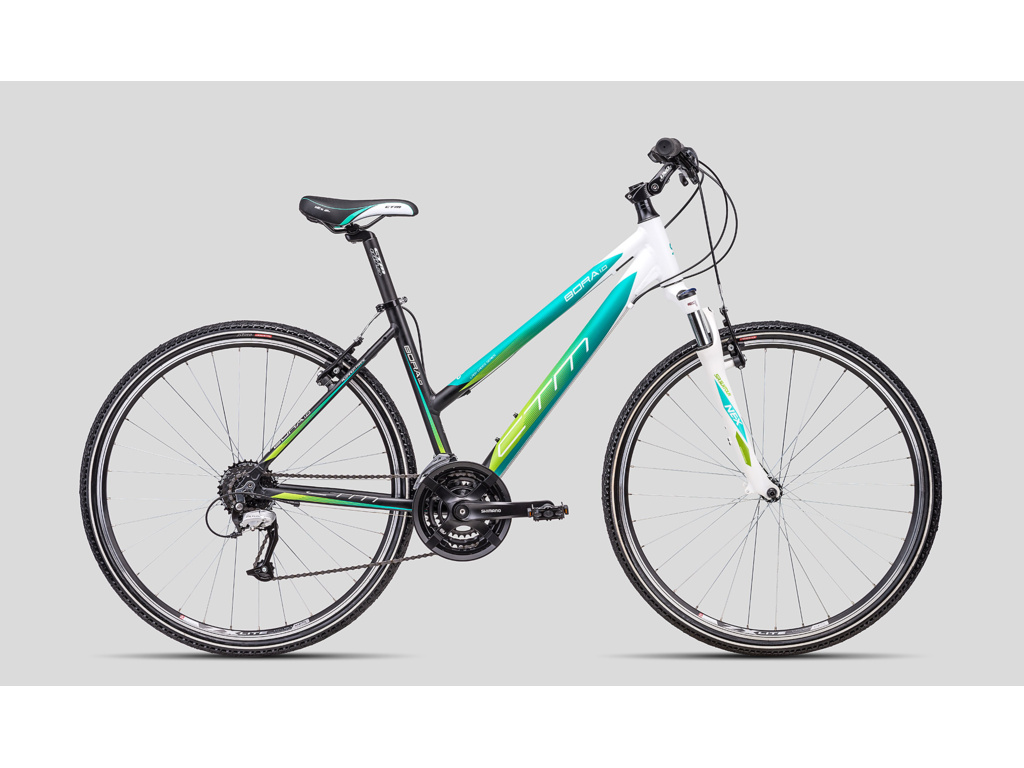 CTM Bora 1.0 je dámské krosové kolo pro rekreační použití, ideální pro vyjížďky po zpevněných i nezpevněných stezkách. Hliníkový rám je osazen odpruženou vidlicí Suntour s uzamykáním, spolehlivými ráfkovými V-brzdami a řazením Shimano s 3x8 převody.