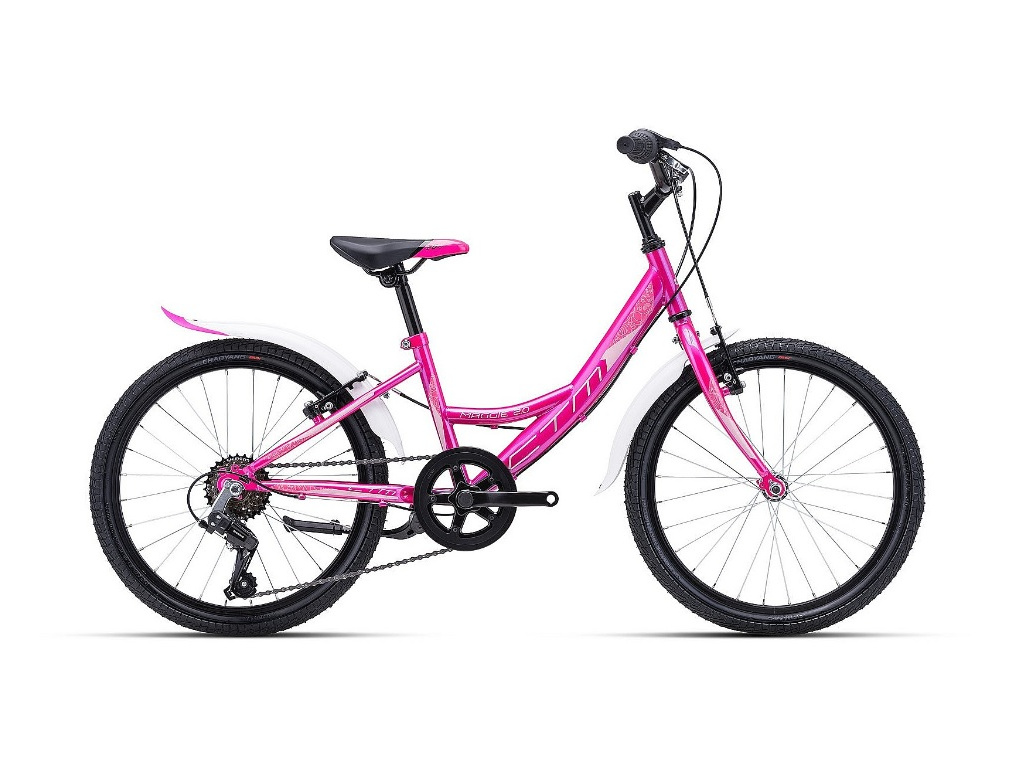 CTM Ellie je krásné dívčí kolo pro mladé slečny od 115 do 130 cm. Lehký hliníkový rám s velmi pohodlným nástupem a s pevnou vidlicí je osazen ráfkovými brzdami a řazením Shimano s jedním převodníkem a 6 převody.