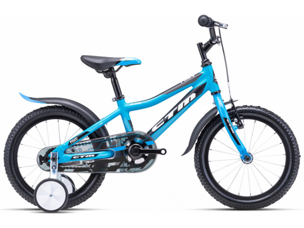 CTM Foxy je dětské kolo vhodné pro děti ve věku 3-5 let. Kolo je vybaveno ráfkovými brzdami, přídavnými kolečky a hliníkovým rámem velikosti 8".