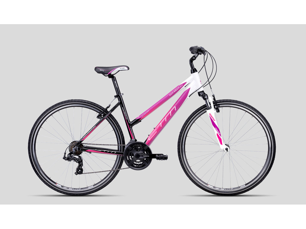 Dámské krosové kolo CTM Maxima 2.0 patří mezi oblíbená kola za příznivou cenu. Hliníkový rám je osazen odpruženou vidlicí Suntour, spolehlivými ráfkovými brzdami a komponenty Shimano s 21 převody.