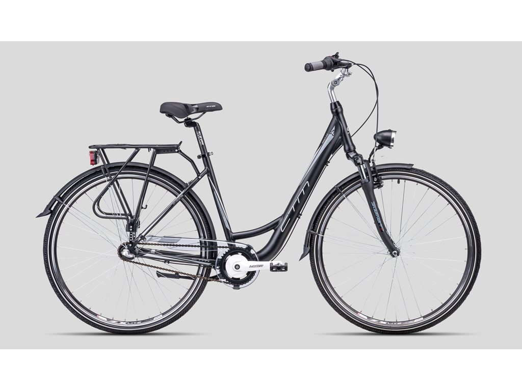Dámské 28" městské kolo CTM Nancy 2.0 postaveno na hliníkovém rámu s nízkým nástupem. Pro vyšší komfort je vybaveno vidlicí Suntour CR-7V 700C. Na kole můžete využívat 3 převodů umístěných v zadním náboji Nexus 3, který také slouží jako zadní brzda. Kolo je vybaveno blatníky, osvětlením a krytem řetězu.
