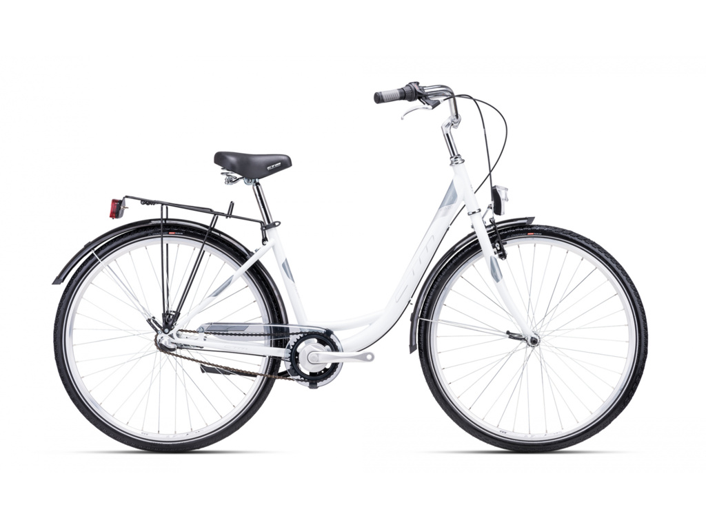 Elegantní městské kolo CTM Rita 2.0 s upravenou geometrií pro dámy, spolehlivými komponenty a kompletní výbavou – s blatníky, zadním nosičem. stojanem a světly – je ideální volba do města i na cyklostezky.