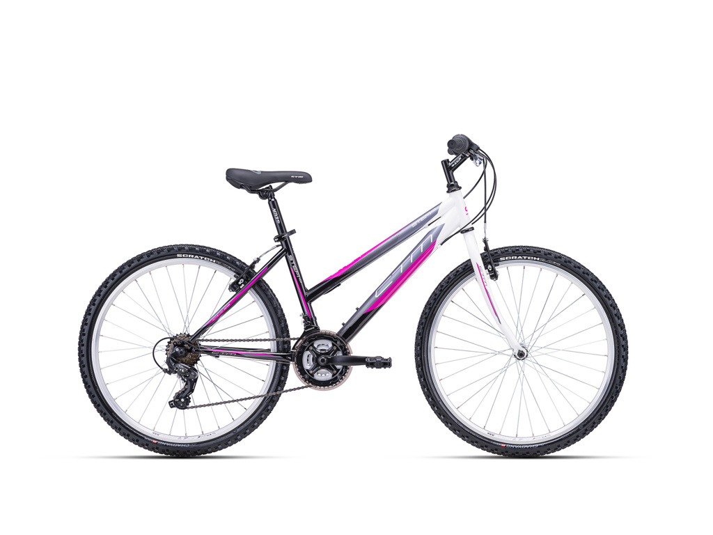 Základní model horského kola CTM Stefi 1.0 je osazen hliníkovým rámem a komponenty Shimano s 3x7 převody a ráfkovými brzdami ALHONGA. Spolehlivé kolo pro nenáročné jezdce.