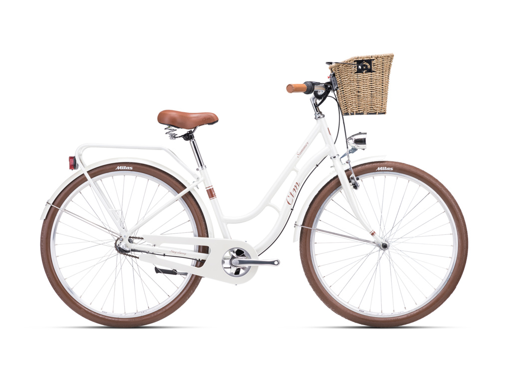 CTM Summer je dámské kolo v krásném retro designu, které se hodí do města, ale i na rodinné výlety do lehčího terénu. Už od základu je vybaveno nosičem, blatníky, předním proutěným košíkem, osvětlením a řazením v náboji pro minimální údržbu.