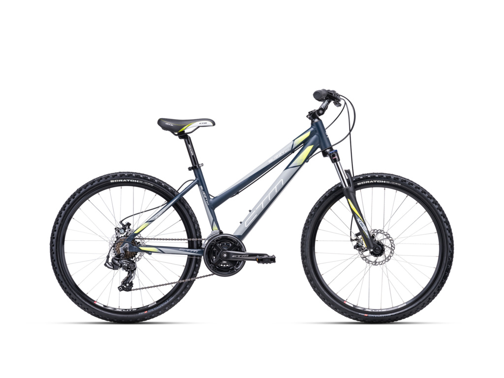 CTM Suzzy 2.0 je horské kolo vhodné pro rekreační a víkendové použití. Lehký hliníkový rám je osazen odpruženou vidlicí Suntour, komponenty Shimano s 3x7 převody a s mechanickými kotoučovými brzdami Hayes.