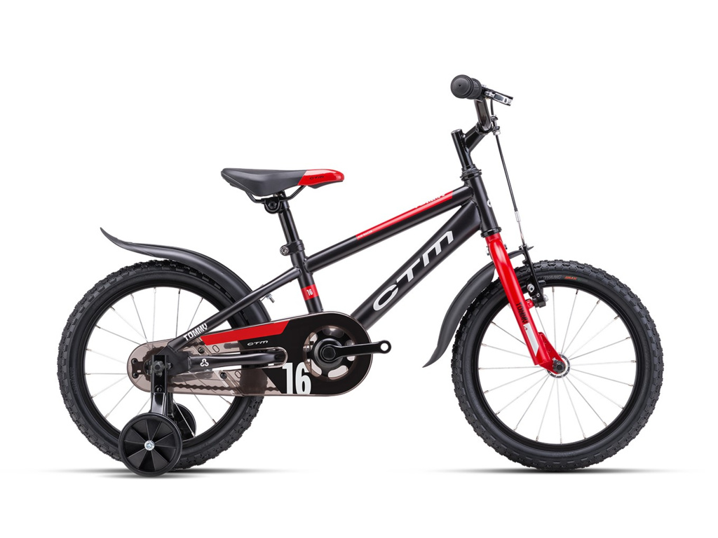 Dětské kolo na 16palcových kolech, vhodné pro první začátky v sedle. CTM Tommy nabízí ocelový rám, 1 převod se zadní protišlapnou brzdou, bezpečnostní kryt řetězu, plastové blatníky a odnímatelná balanční kolečka. Hravý design modelu a veselé barvy si váš malý sportovce zamiluje.
