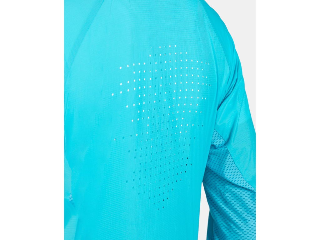 Celková hmotnost bundy je pouhých 90 gramů ve velikosti 36. Bundu lehce sbalíte do boční kapsy. V podpaží a na bocích je použit tenký síťovaný materiál, který spolu s mikroperforací na zádech zaručuje maximální prodyšnost. Vysoký límec je z vnitřní strany vystlaný rychleschnoucím materiálem, který dobře odvádí pot. Bunda má prodloužené rukávy s manžetou na palec a průstřihem na hodinky. Přední zip s krytkou brady je dvoucestný a poslouží k lepšímu odvětrávání. Volnější střih vás nebude omezovat v pohybu. Lemy rukávů a spodní lem krásně přiléhají. Na zádech je použita laserem řezaná mikroperforace. Samozřejmostí u produktů Kilpi jsou výrazné reflexní prvky.