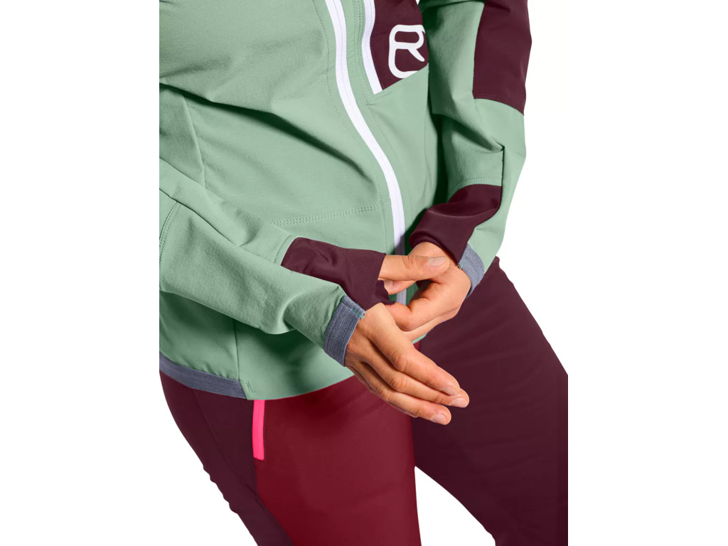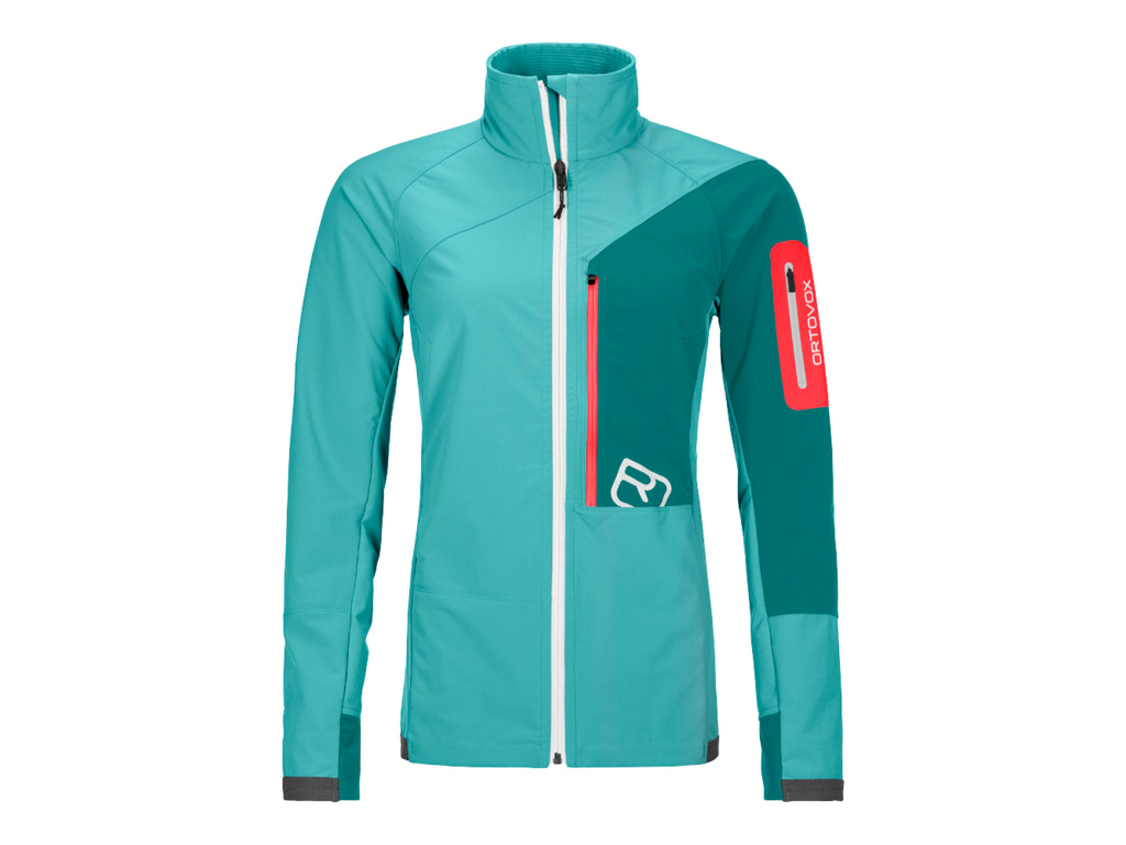 Dámská bunda atletického střihu s elastickým lemem a pružnými manžetami, která byla vyvinuta speciálně pro potřeby skitouringu. ORTOVOX Berrino s náprsní kapsou, dvouvrstvým límcem a rychleschnoucími vlastnostmi.